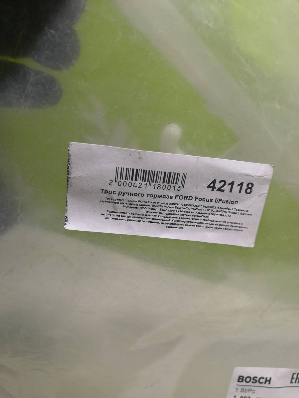 Трос стояночного тормоза Bosch Форд Фиеста