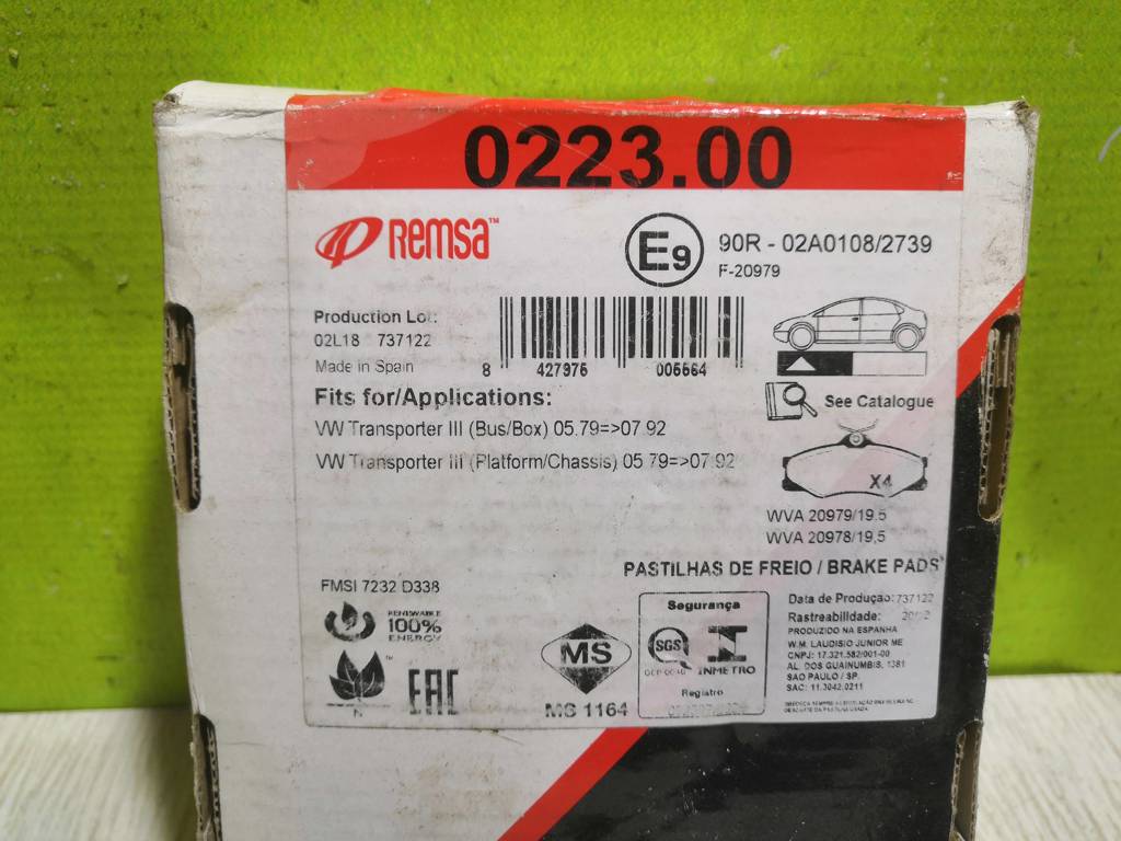 Колодки тормозные передние к-кт Новые Remsa Фольксваген Транспортер Т2 Т3